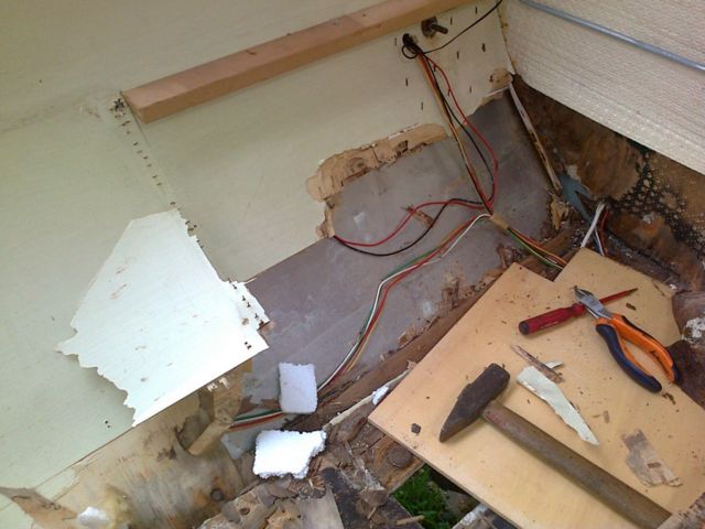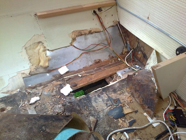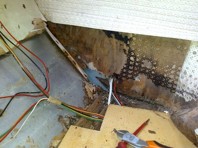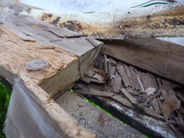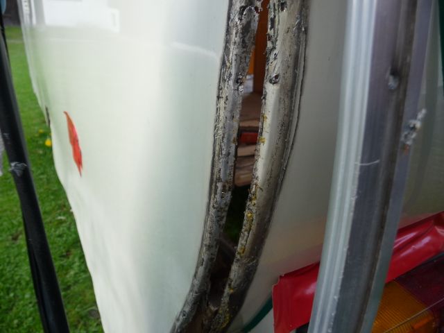druntergeklebt, abgedichtet und nach innen verschraubt. Repariert wurde, wenn,